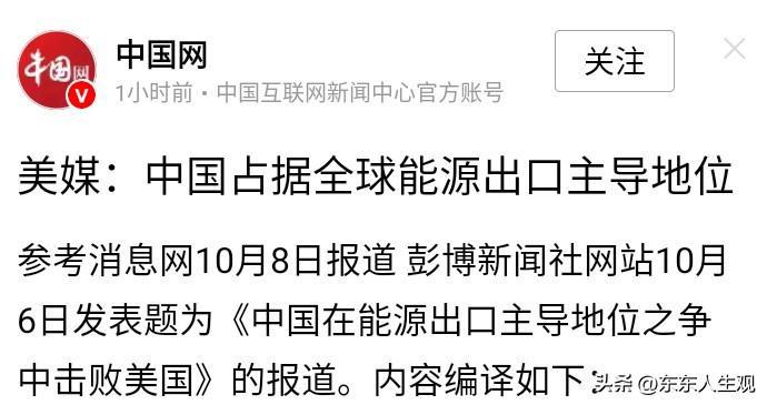 - 而彭博社10月8日发布了关于中国已经牢牢占据了世界能源出口主导地位的文章则坐实了石油美元根基已经被彻底动摇了。