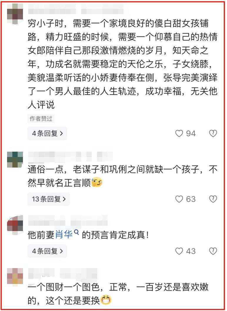 提及张艺谋,这位国际知名大导演,在感情道路上似乎也未能完全跳出这一“套路”,又或者说,他实现了许多男人心中的终极梦想。