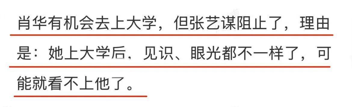 张艺谋的第一段婚姻,堪称高攀了女同学肖华。他对这位家境优越的北京姑娘展开了疯狂的追求,据说还写了长达40页的情书。好不容易追到肖华后,张艺谋却被分配到乡下劳动。他担心肖华变心,临走前写了一封信,将农村艰苦的生活描绘成了两人浪漫的恋爱场景。