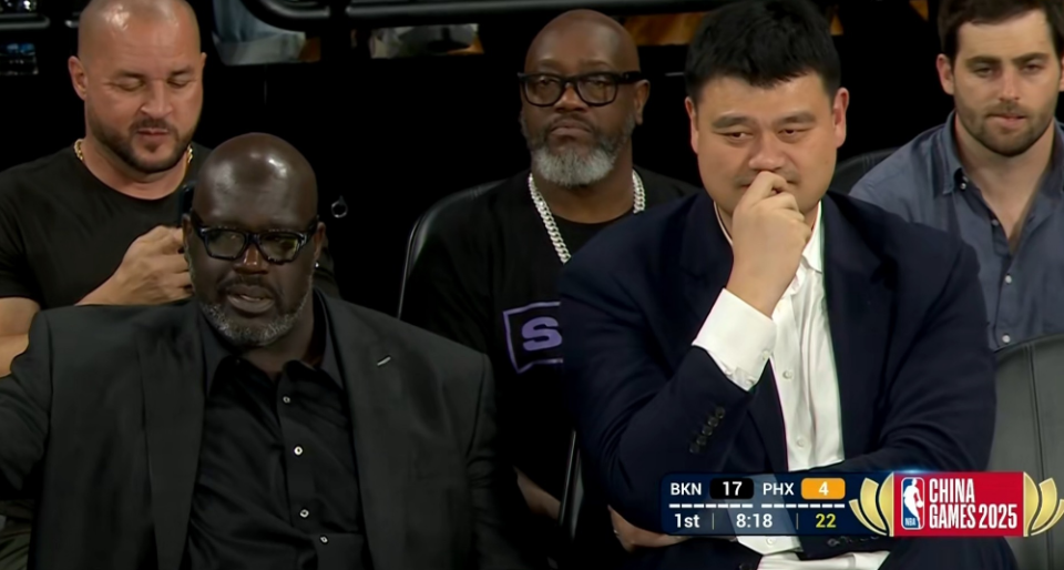 姚明与奥尼尔到场观战,“姚鲨组合”坐在一起,瞬间引发球迷的回忆杀。