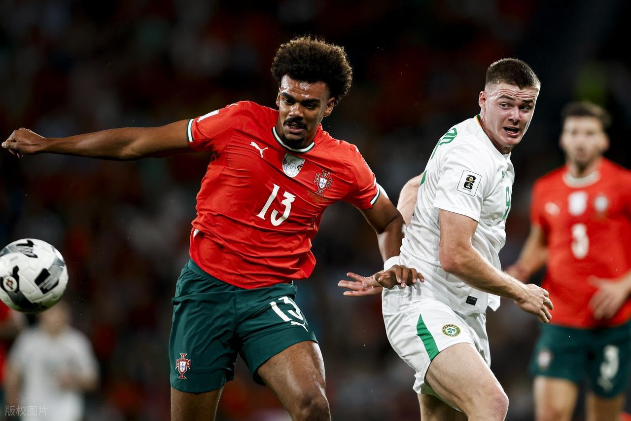 易边再战,葡萄牙继续围攻爱尔兰。第49分钟,迪亚斯禁区边上兜传门前,C罗头槌攻门顶偏。随后,内维斯和维蒂尼亚的射门均被凯莱赫扑出。第70分钟,塞梅多突入禁区倒三角回传,C罗小禁区前沿抢点扫射,皮球稍稍偏出门柱。
