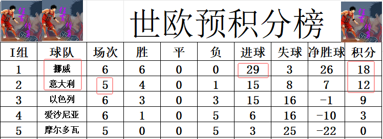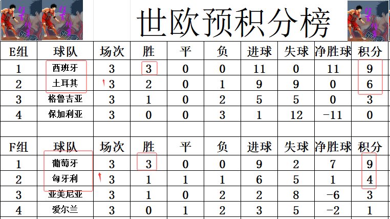 西班牙主场2-0完胜格鲁吉亚,继续以全胜战绩紧随葡萄牙之后。土耳其客场6-1轻取保加利亚,匈牙利2-0击败亚美尼亚,两队均升至小组第二。挪威主场5-0狂胜以色列,6轮打入29球,场均近5球,多赛一场的情况下领先意大利6分,出线形势一片大好。