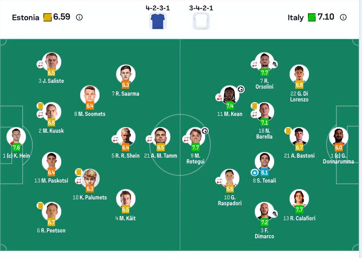 比赛第76分钟出现戏剧性一幕:面对爱沙尼亚毫无威胁的传中球,多纳鲁马居然出现脱手失误,萨皮宁轻松补射破门。这个低级失误让意大利的胜利略显瑕疵。