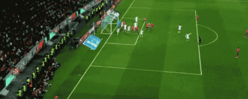 第75分钟,C罗操刀主罚,少见打向中路,凯莱赫虽然倒向一边,仍然用腿将球挡出。