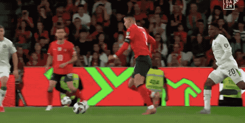 第53分钟,接到B费的传球,C罗停球射门衔接相当快,皮球稍稍偏出。