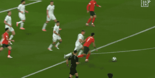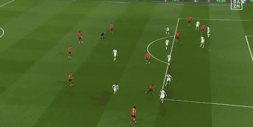 第38分钟,维蒂尼亚的射门被后卫挡了一下,变成了吊射,打在了球网上方。