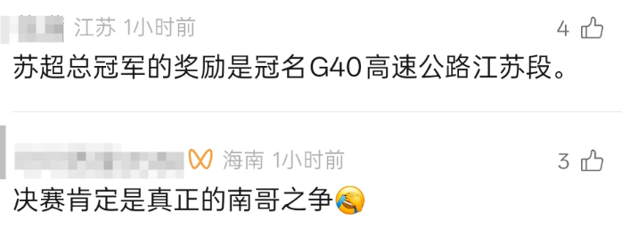 网友对此展开趣味讨论,有人戏称“G40高速是苏超决赛的风水指南”,也有人认真分析路牌标注与赛程的巧合性。以下为部分网友评论截图: