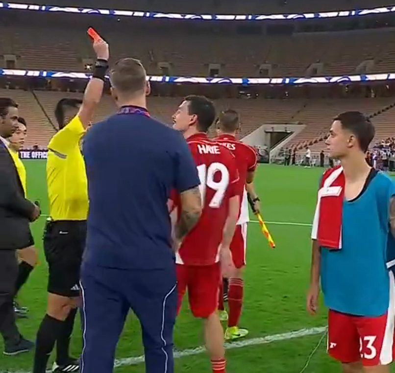 这场比赛堪称马宁的高光时刻,他一共出示了7张黄牌和2张红牌,其中1张红牌是在比赛结束后出示的,这完全符合他“卡牌大师”的称号。整场比赛中,他对印尼队出示了5张黄牌和1张红牌,对伊拉克队则出示了2张黄牌和1张红牌。尽管有两张红牌,但对比赛走势几乎没有产生任何影响。对印尼球员出示的红牌,是因为该球员在比赛结束后对马宁出言不逊,马宁毫不留情地直接出示红牌,让其下场比赛停赛。当然,由于印尼已经提前出局,这张红牌对印尼来说已无关紧要。