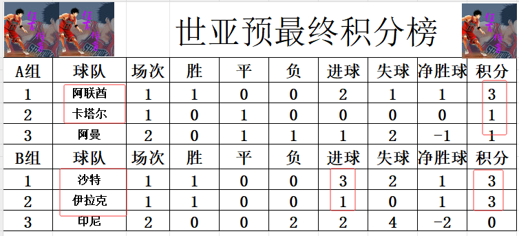 积分榜方面,A组中阿联酋逆转绝杀后超越卡塔尔领跑小组,输球的阿曼仍存理论出线可能,他们需寄希望于阿联酋末轮击败卡塔尔。卡塔尔若想小组头名出线,最后一轮必须战胜阿联酋。B组中,伊拉克虽赢球但因进球数少于沙特暂列第二,末轮必须取胜才能直接获得世界杯参赛资格。印尼队两连败后提前锁定小组垫底,彻底无缘2026世界杯。