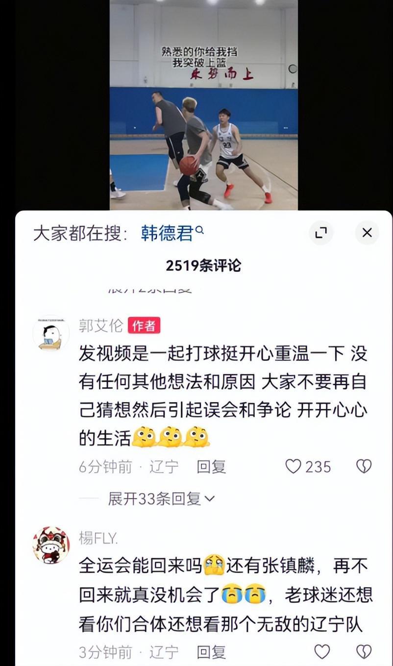 面对这一情况,郭艾伦不得不在留言区辟谣,他写道:“发视频是因为一起打球挺开心重温一下,没有任何其他想法和原因,大家不要再自己猜想,然后引起误会和争论,开开心心地生活。”