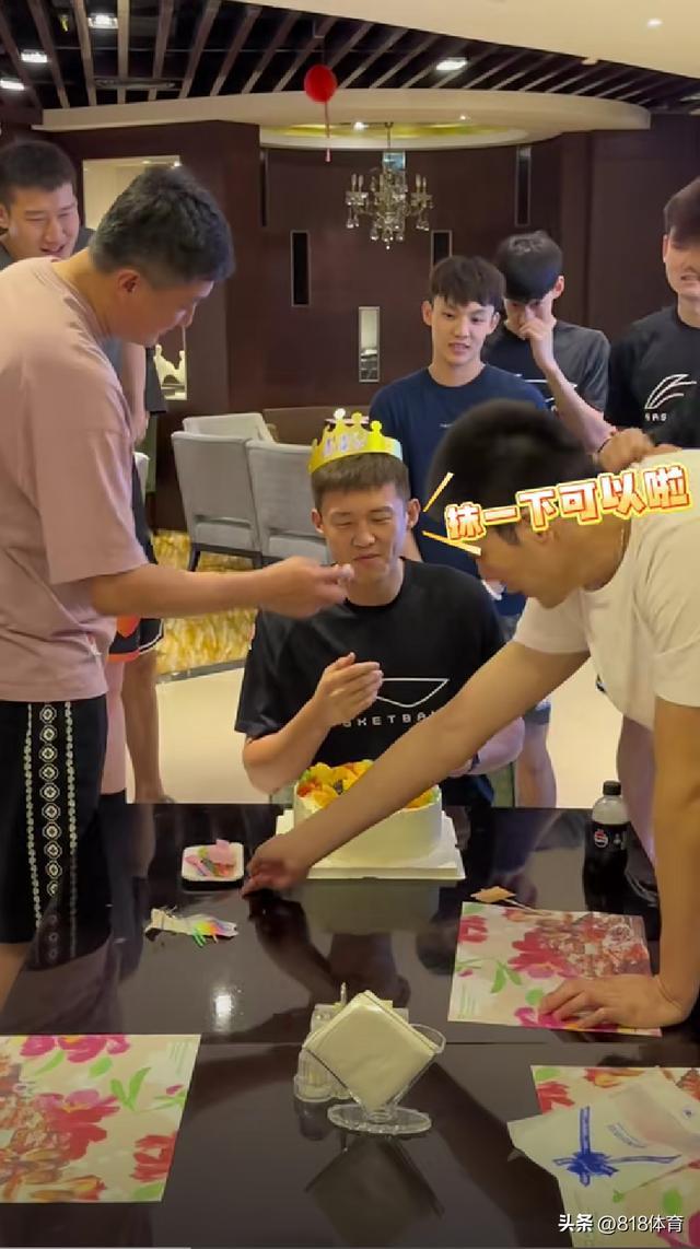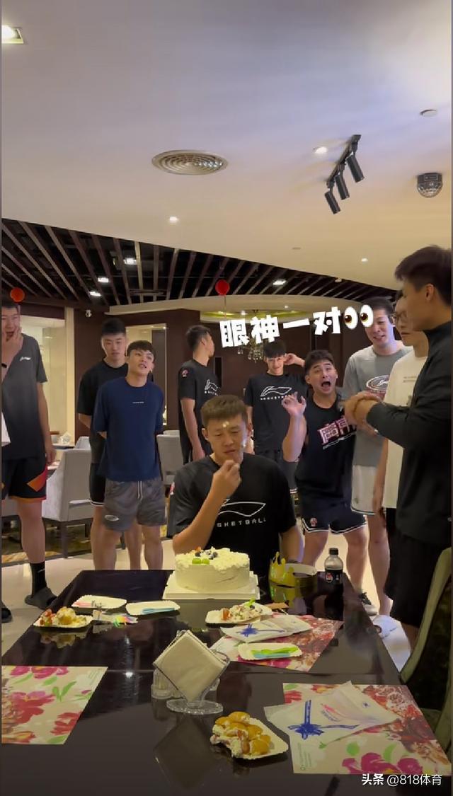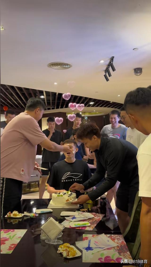 期间,杜锋指导还亲自给周鹏喂了一口蛋糕,场面十分有爱。