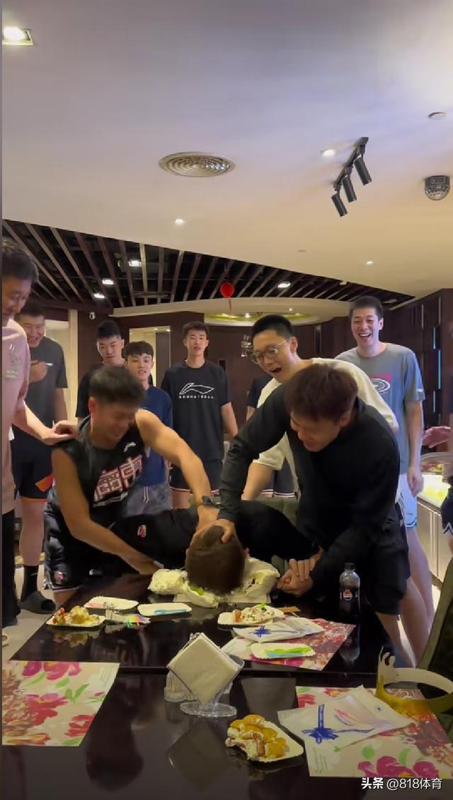 看到周鹏被拍成了一脸奶油,赵睿忍不住哈哈大笑,而杜锋指导则是一脸坏笑,似乎对这场“恶作剧”十分满意。
