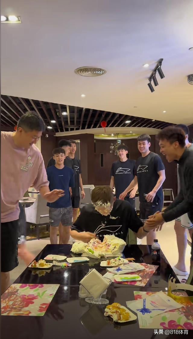 10月11日,是周鹏的36岁生日。主教练杜锋带领众弟子为周鹏庆生,场面温馨而欢乐。活动刚开始,气氛就十分融洽,杜锋让队友们一起为周鹏唱生日歌。赵睿、胡明轩、徐杰、李炎哲等球员围绕在周鹏身旁,一边鼓掌一边唱歌,为队长送上最真挚的祝福。