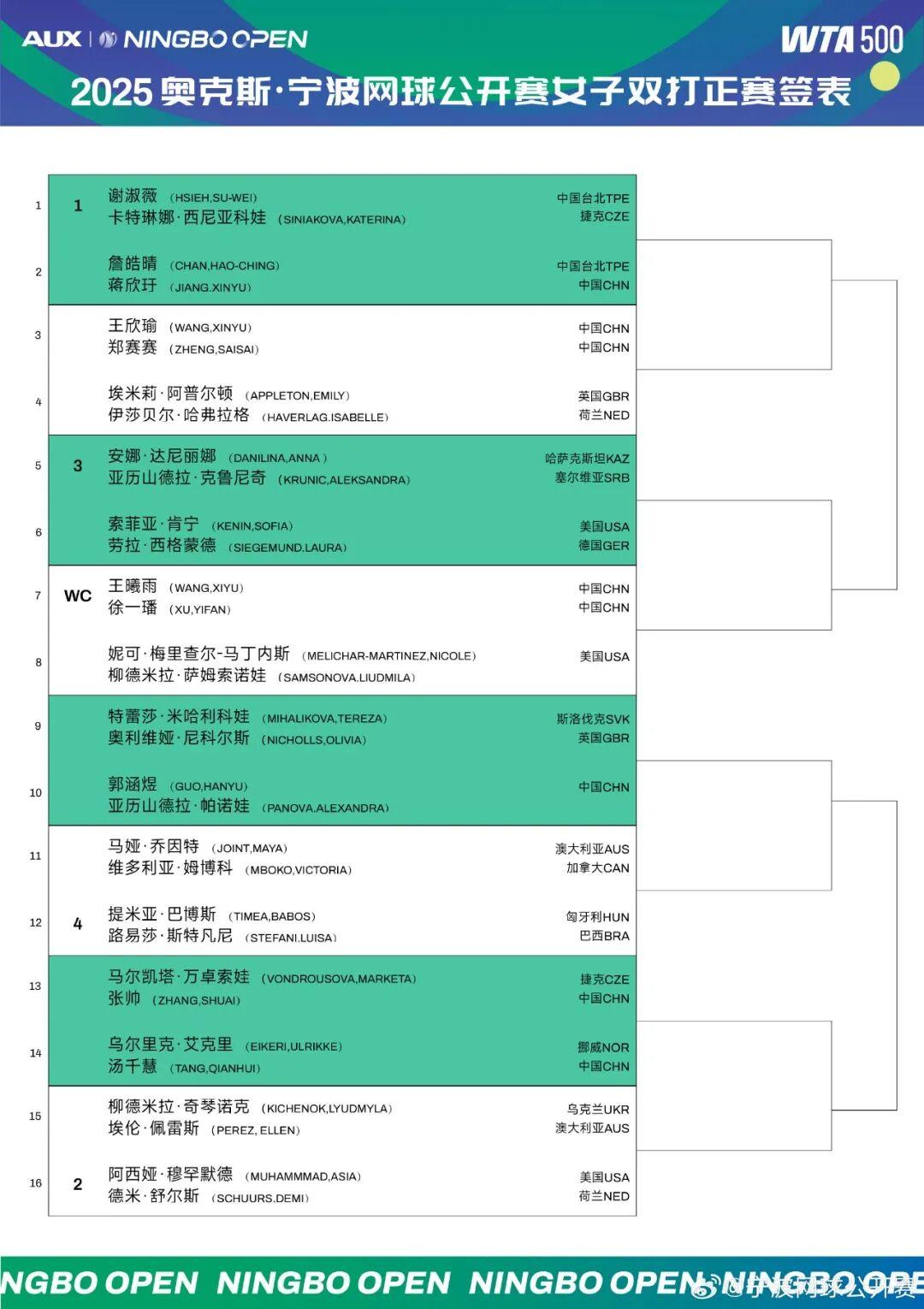 在双打方面,中国球员同样有着不俗的表现。多对组合将出战首轮比赛,为球迷们带来双打的精彩。具体对阵情况如下: