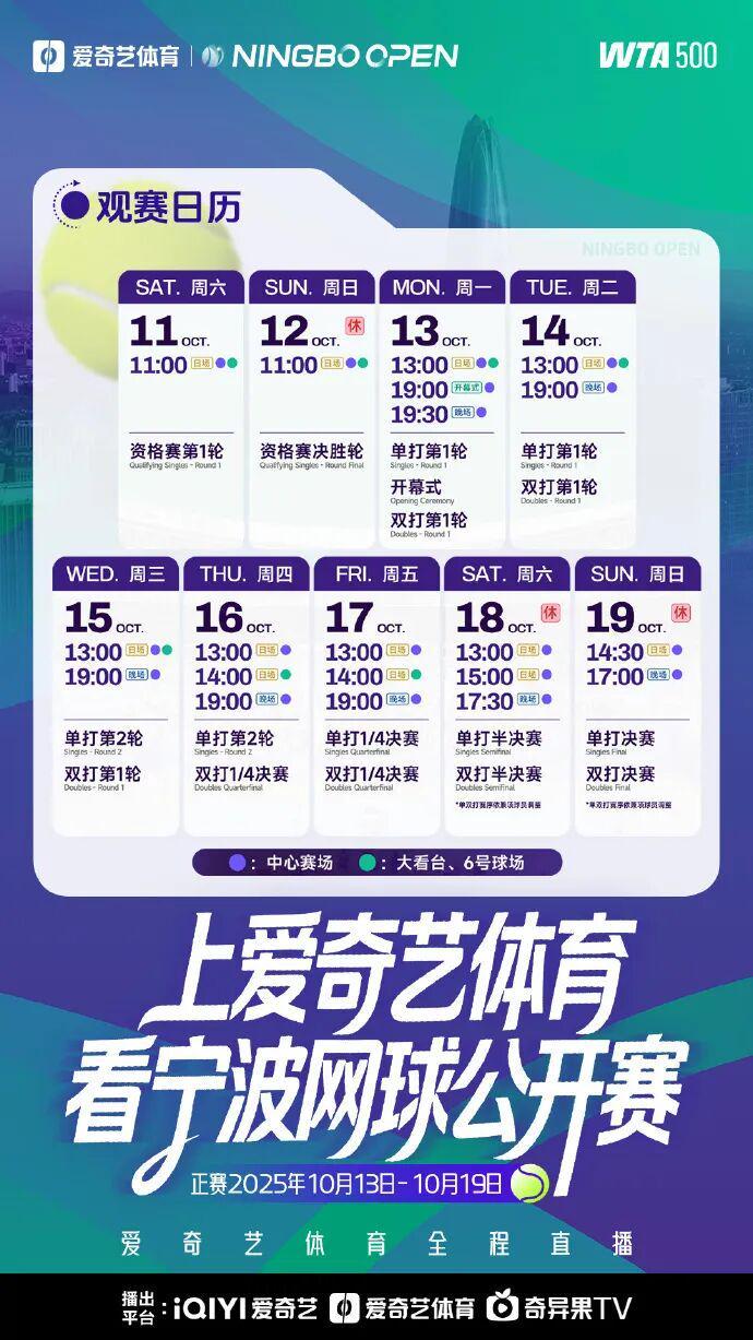 北京时间10月11日消息,备受瞩目的WTA500宁波站赛事即将拉开帷幕。据悉,爱奇艺体育将从10月13日起,全程免费直播这场网球盛宴,让广大球迷足不出户就能欣赏到高水平的网球对决。
