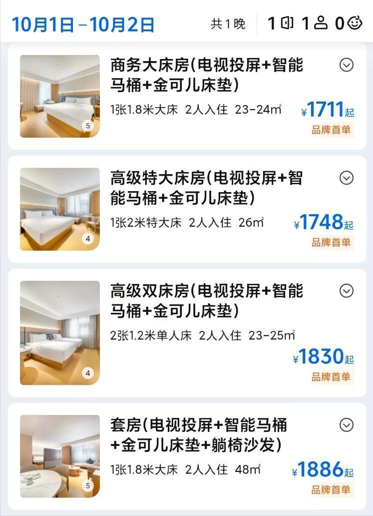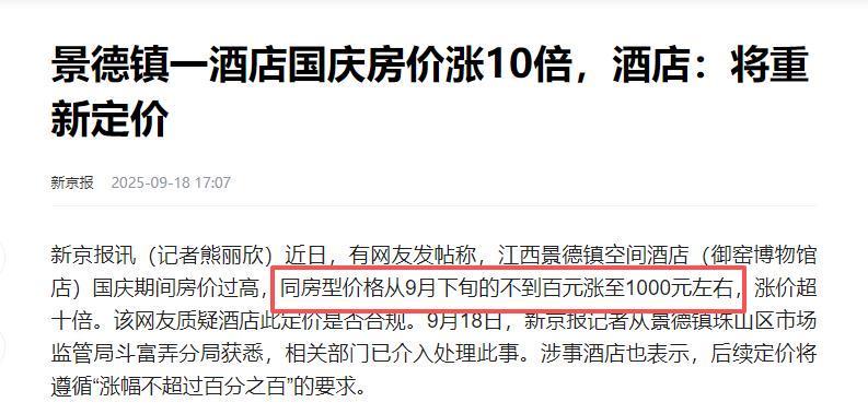 江西景德镇某酒店更厉害,平时90元一晚,国庆期间1000元一晚。
