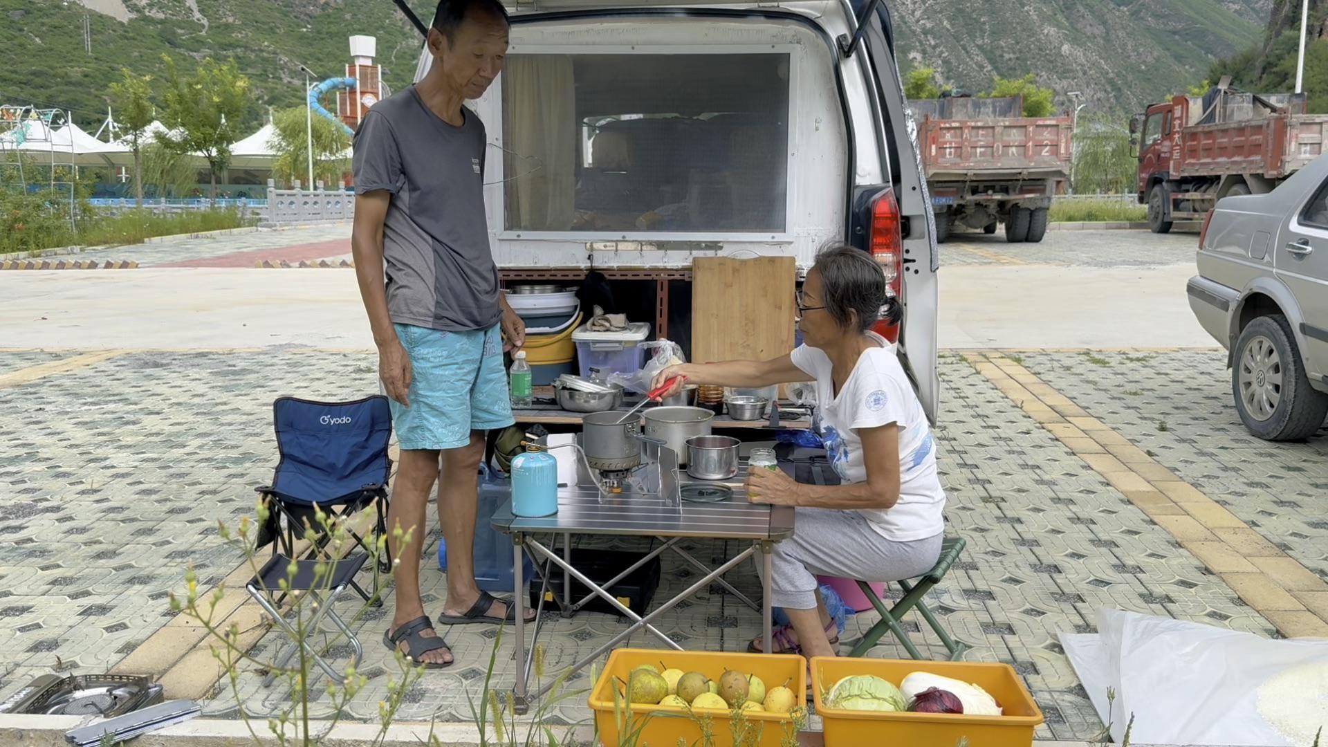 如今,光是在车里住已经不能满足大家想省钱的心理了,不少游客自带锅碗瓢盆和吃食,停车就休息,停车就煮饭。