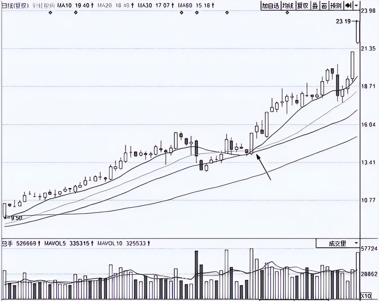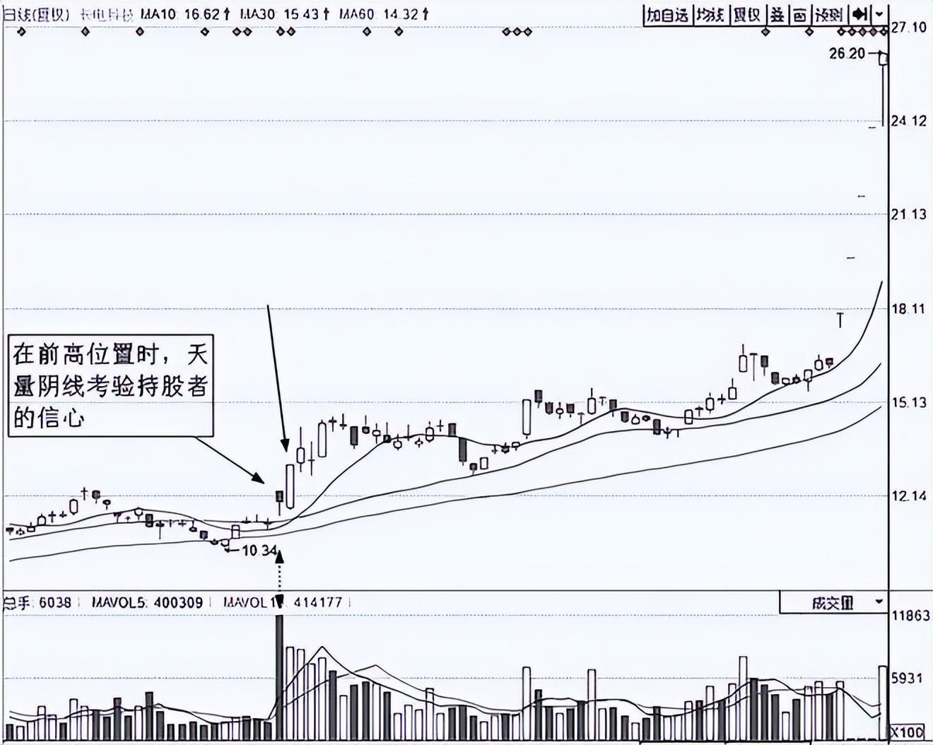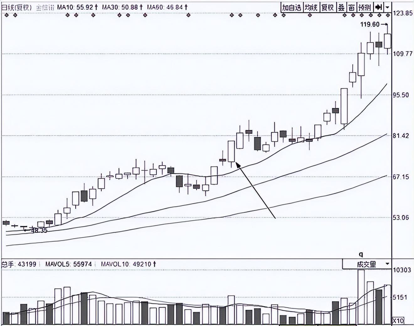 涨升行情中,成交量放得过大不好,量能过早或过度放大,会消耗上攻动能。最理想的放量是在行情启动初期时,量能持续性温和放大,步入正常上升通道后,量能略有减少,并保持较长时间。