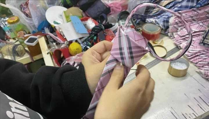 做出来的校园风领带、领结,图案清新、面料舒服,成了不少制服厂的“指定货源”。