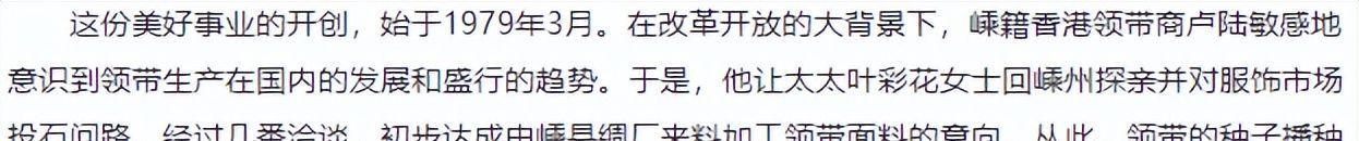 卢陆一考察就发现,嵊州的真丝原料好,做领带再合适不过,当即决定出资办厂。