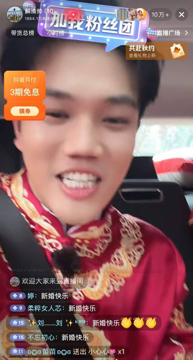 从家门口出来后,解清帅便开启了直播。寻亲圈的流量果然不容小觑,开播没多久,直播间人数便迅速攀升至10万加。解清帅在直播间中与粉丝互动,并发放福袋,不过并未看到其直播带货。