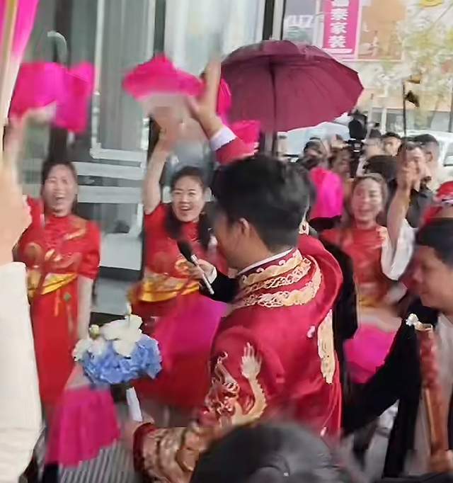 据悉,解清帅此次婚礼采用的车队是红旗H9,前前后后差不多有10多辆。到达现场后,解清帅在众人的拥护下前往酒店。在酒店门口,可以看到两个特色:一是舞狮表演,二是秧歌队助阵。虽然规模不大,但现场气氛却非常热烈,尤其是秧歌队,拿着粉色扇子不停地呼喊。