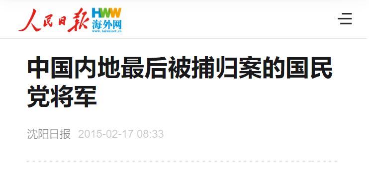 2、中国内地最后被捕归案的国民党将军——沈阳日报 2015-02-17 08:33