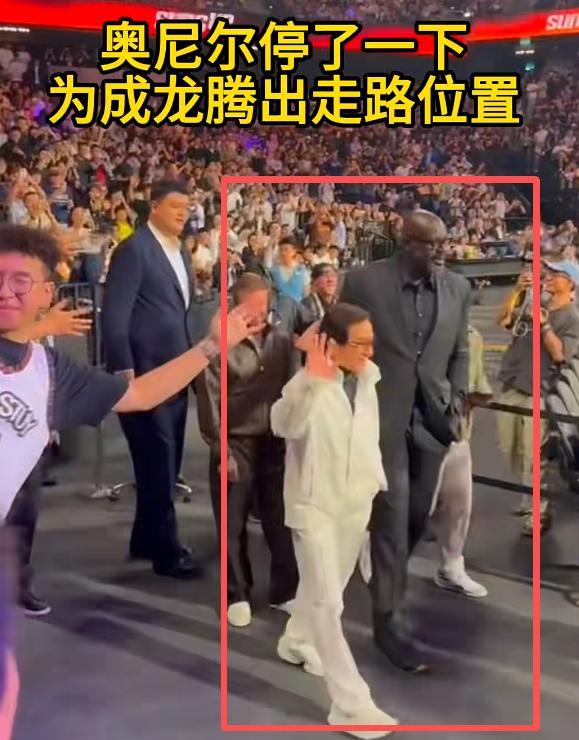 甚至在走向观众席时,奥尼尔还主动把手放在了成龙大哥的后背上。这一举动,无疑表达了奥尼尔对大哥的尊重。而且奥尼尔还专门慢了一步,让成龙大哥走在前面,这个小细节也能从侧面体现出成龙大哥的国际影响力。