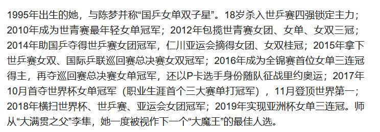 这样亮眼的成绩,也让她和樊振东一样成为了里约奥运会的P卡成员。
