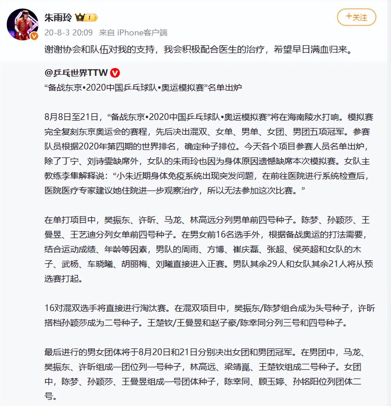 甚至对朱雨玲来说,她生病也和隐忍有关。