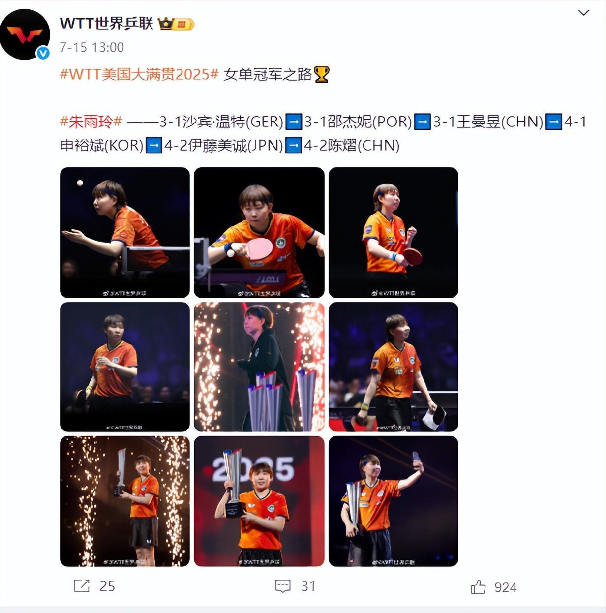三个月前,朱雨玲荣获美国大满贯女单冠军,用战胜疾病后强势回归的战绩赢得满堂彩。