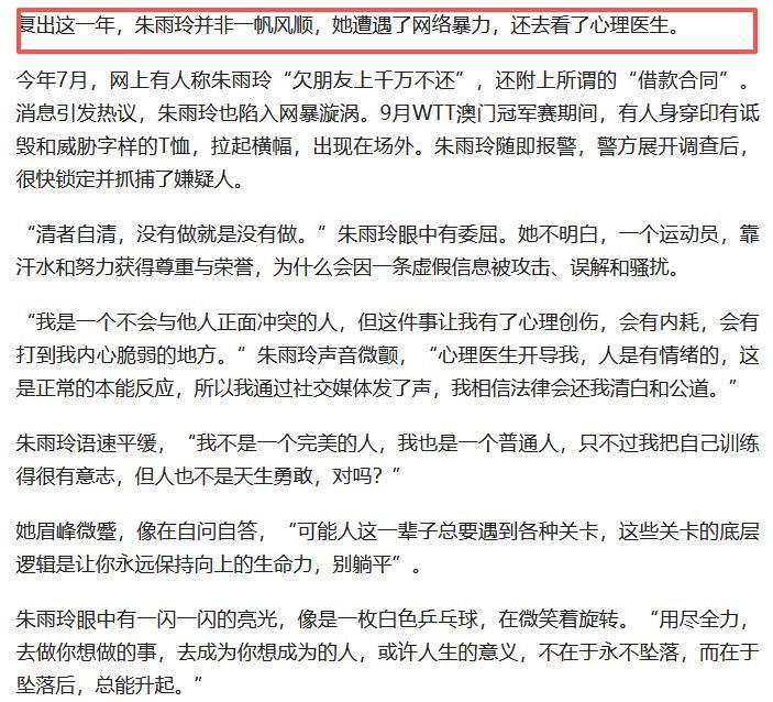 回看朱雨玲的经历这几年,本应收获满屏敬意,可总有一些人,偏偏带着恶意向她袭来。