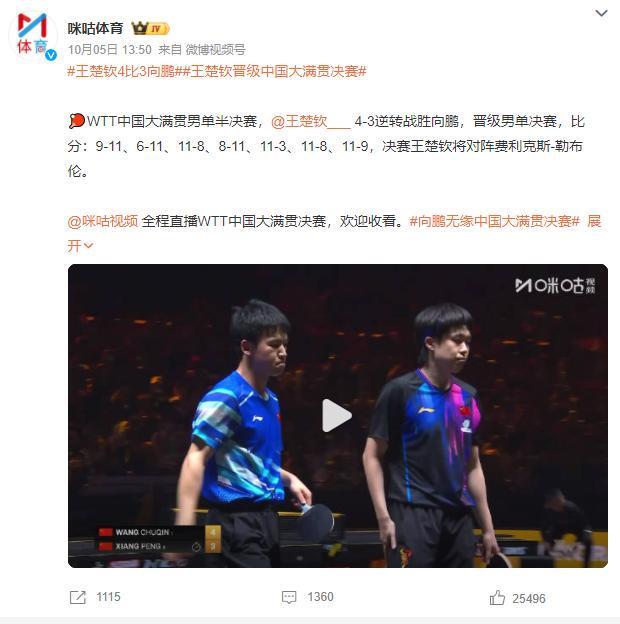 上一站北京大满贯,身兼三项的他明明已经累到喘气了,还有人猜测半决赛是向鹏让球。