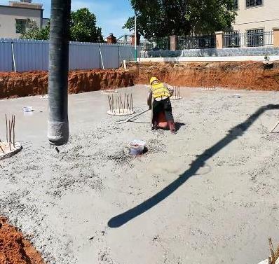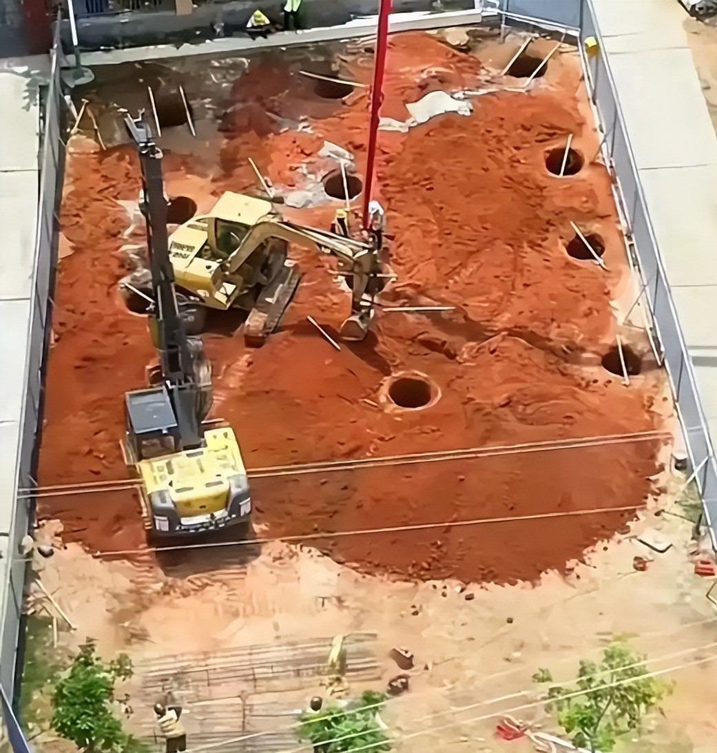 施工初期,团队便打出深达6米的地基桩,采用高强度铝模和C40混凝土。