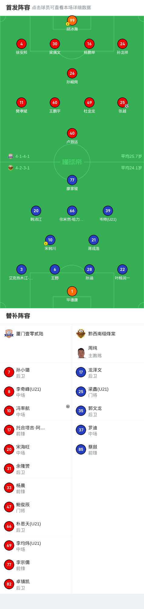 本场比赛上半场双方互有攻守,但均未能打破僵局。转折点出现在下半场第52分钟,厦门壹零贰陆前锋张越抓住对手防守漏洞,冷静推射破门,为球队取得领先。仅过21分钟,中场球员冯率航再下一城,通过精准的远射扩大比分。两粒关键进球彻底终结比赛悬念,最终厦门壹零贰陆以2-0的比分完胜黔西南栩烽棠。