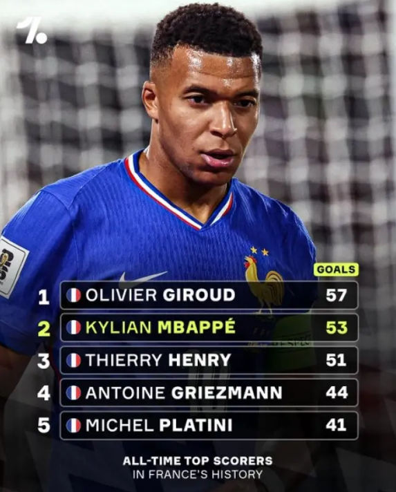 《马卡报》深入分析指出,姆巴佩极有可能在2026年世界杯前完成对吉鲁的超越。目前法国队历史射手榜上,吉鲁以57球暂居榜首,而姆巴佩的53球已让他稳居次席。考虑到姆巴佩的年龄优势与持续进化的技术能力,这一突破被视为大概率事件。