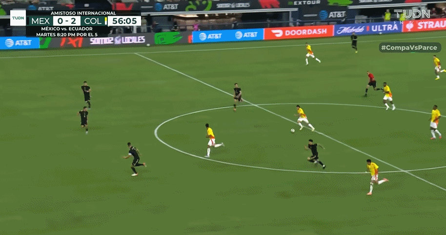 第56分钟,J罗再次展现了他的传球功底。他在中路持球推进,面对墨西哥队的严密防守,他巧妙地送出一记精准传球,助攻迪亚斯挑射破门,将比分扩大为2-0。