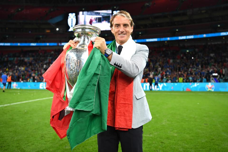 在曼奇尼的执教下,意大利国家队开启了一个属于蓝衣军团的巅峰时代。这支队伍从2018年9月10日开始,一直保持不败,直到2021年10月欧国联半决赛1-2不敌西班牙,才终结了这段长达三年多、共计37场的不败纪录。在这期间,他们赢下了30场比赛,打平7场,更是在温布利球场点球击败英格兰,夺得了2020年欧洲杯冠军。在经历2018年无缘世界杯的耻辱后,意大利用这段传奇式的不败征程完成了救赎,那一年,整个意大利都在高唱《Bella Ciao》。