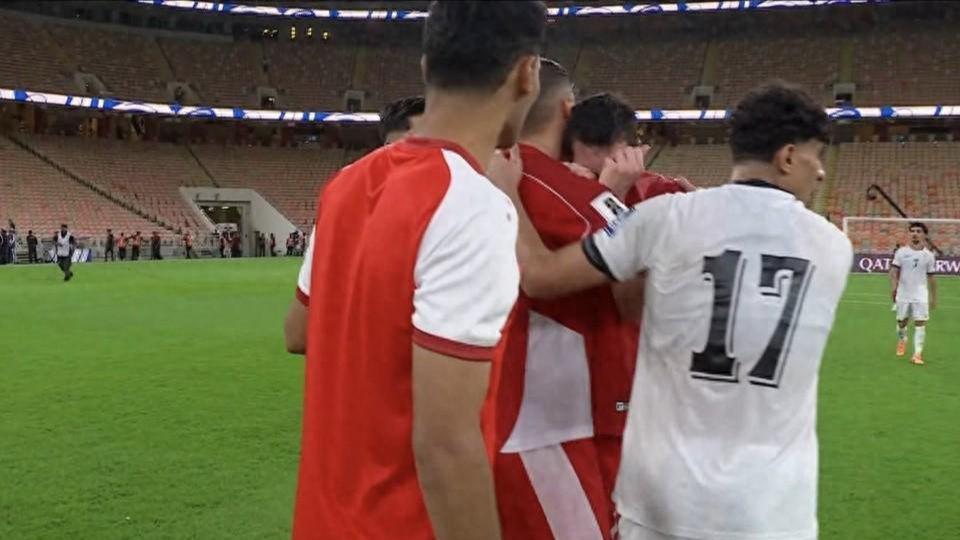 队长杰伊·伊德泽斯第一时间上前紧紧拥抱安慰,而对手伊拉克球员也展现出体育精神——进球功臣阿里·贾西姆轻拍海耶肩膀,给予尊重与鼓励。全场比赛,海耶拼尽全力,但在伊拉克纪律严明、体能充沛的中场压制下显得举步维艰。