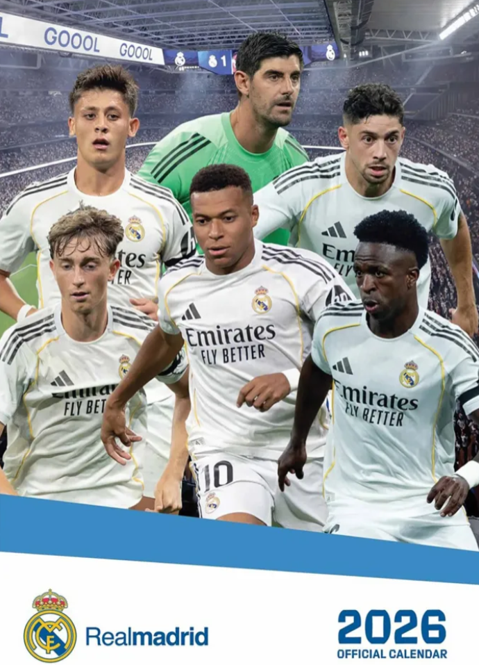 雷速体育10月12日讯,西甲豪门皇家马德里近日正式发布了球队2026年官方赛程日历,定价为10.99英镑。这本备受期待的日历封面阵容星光熠熠,包括了库尔图瓦、姆巴佩、维尼修斯、巴尔韦德、居莱尔以及新援赫伊森等球星。然而,细心的球迷发现,2025年日历封面中的核心球员贝林厄姆,以及夏窗重磅引进的阿诺德,此次均未出现在封面之上,这一变化迅速引发了广泛讨论。