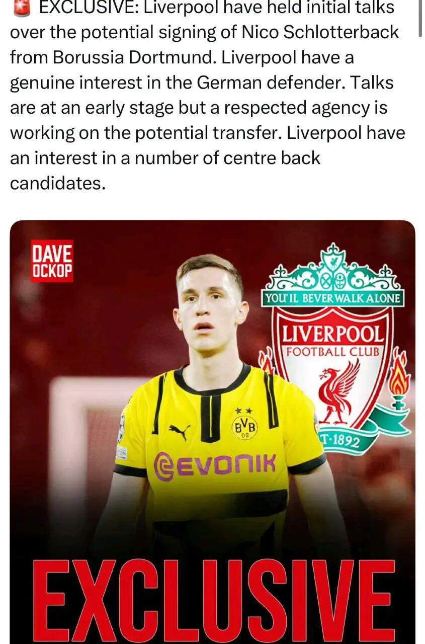近日,足球转会市场再起波澜,一则关于利物浦与多特蒙德后卫施洛特贝克的转会传闻引发了广泛关注。据Dave独家报道,利物浦已经与施洛特贝克进行了初步谈判,显示出红军对这位德国后卫的浓厚兴趣。
