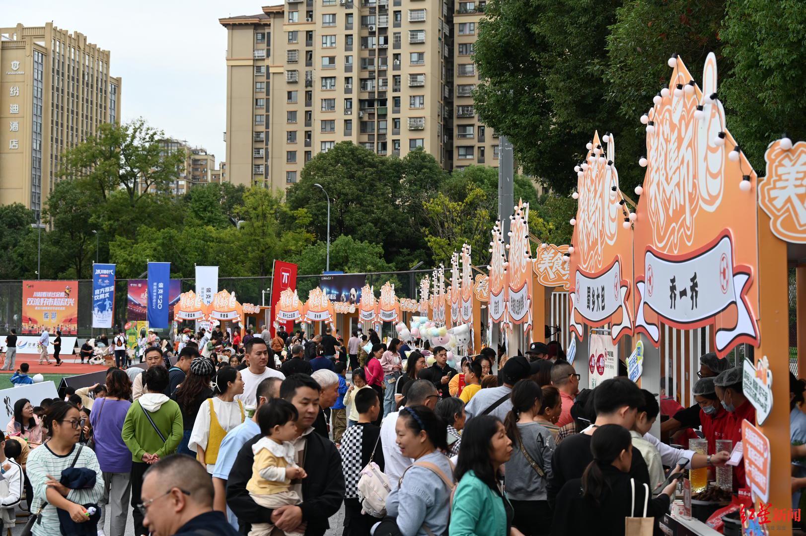 下午4点,距离比赛尚有三个多小时,赛场外的“文旅+消费”盛宴已提前升温。兔头、肥肠粉等特色美食香气扑鼻,奶茶、烧烤唤醒味蕾,互动小游戏与商圈市集联动发力,让这场比赛不仅是足球爱好者的狂欢,更成为拉动多元消费的重要载体。