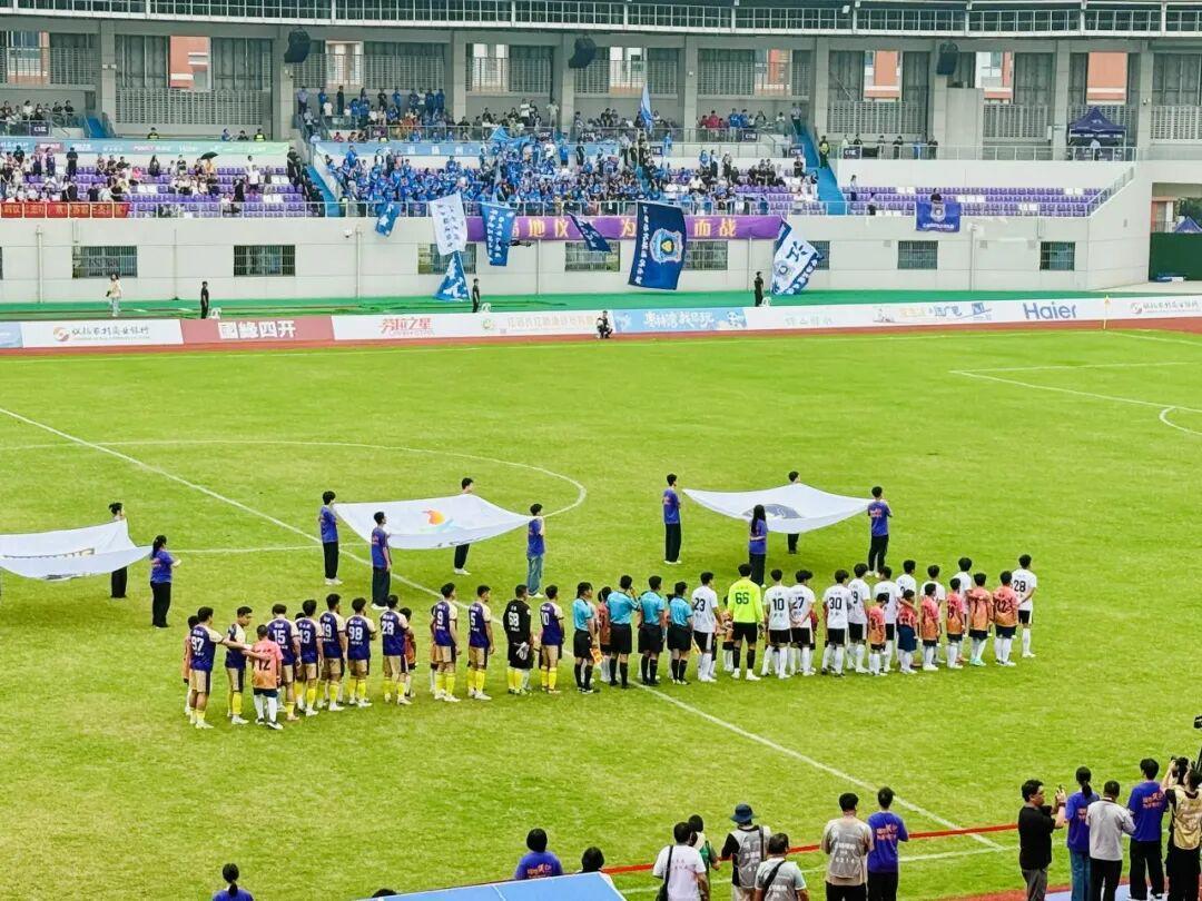 比赛伊始,双方球员手牵球童整齐入场,江都队一身白衣如云,仪征队身着紫衫似霞。双方各自围圈加油,呐喊声震彻全场,瞬间点燃了赛场的热情。