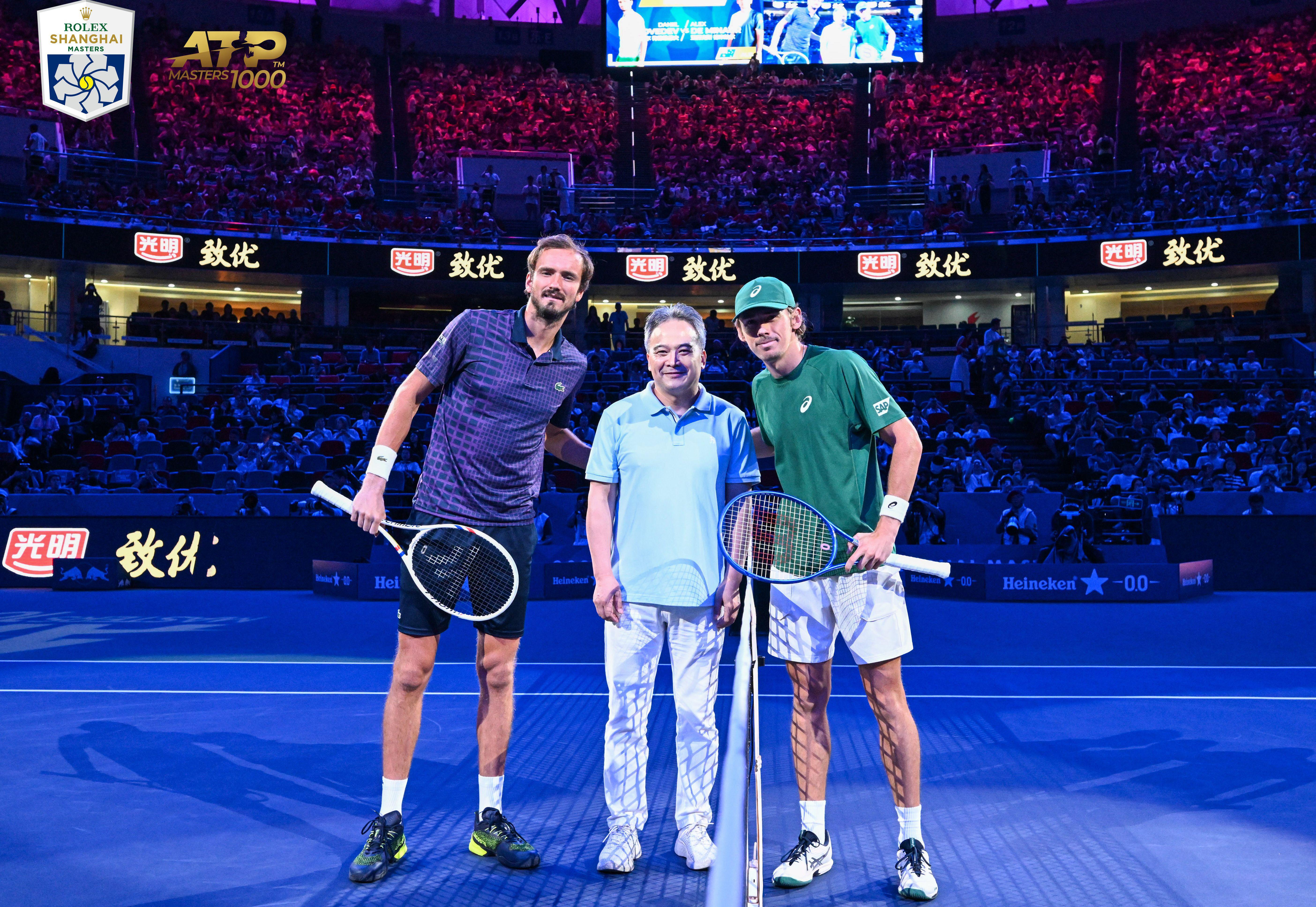 品牌日当晚,黄黎明受邀登台为四分之一男子单打比赛执行挑边仪式。当承载着赛事期待的硬币被抛向空中,不仅象征着赛事进程的稳步推进,更传递出光明乳业始终与中国网球并肩前行、共逐突破的坚定承诺。