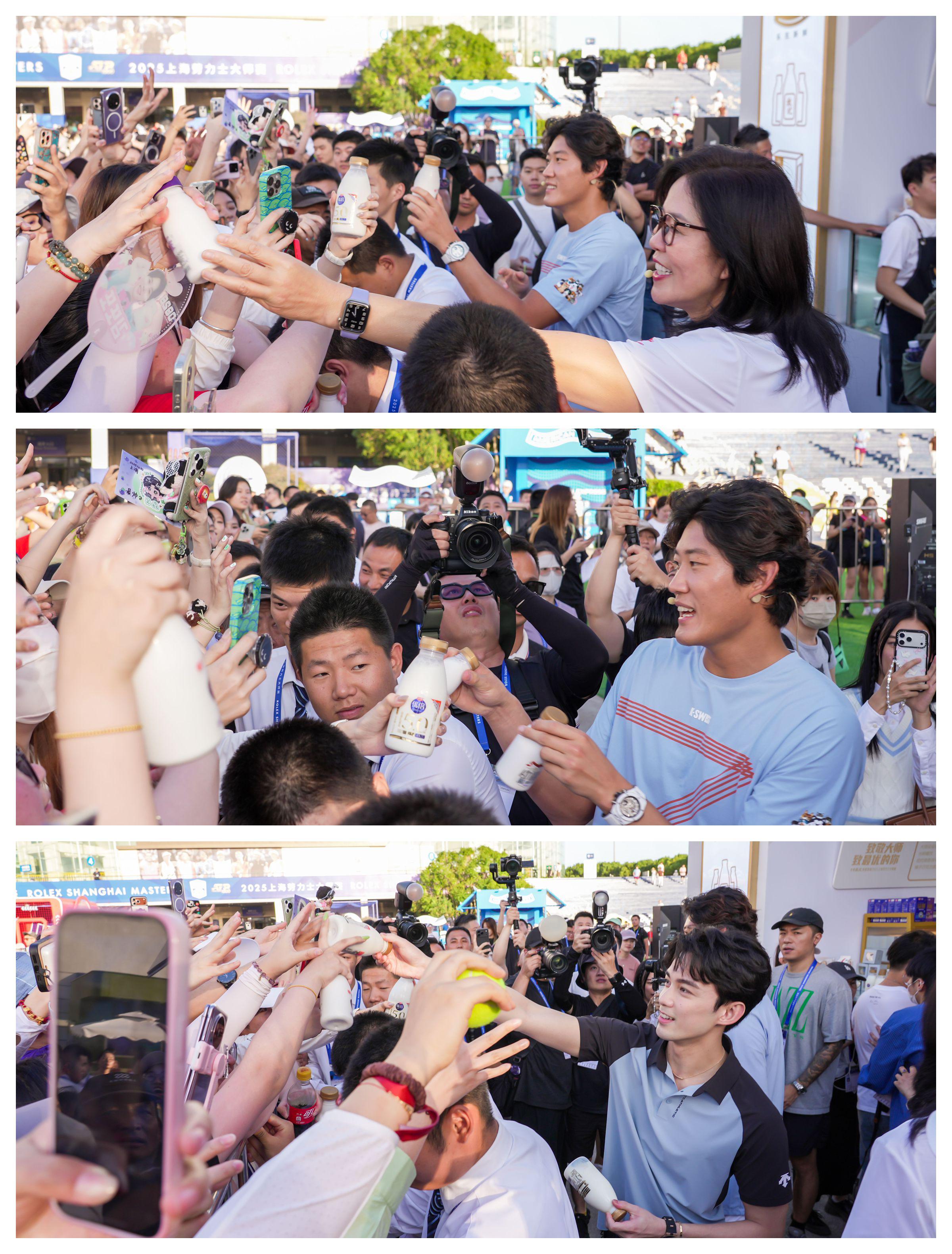 更值得关注的是,光明乳业还专为本次上海大师赛推出了限定款包装的光明致优全鲜乳,包装上张之臻挥拍的动感瞬间与赛事氛围完美契合,拿在手中既是饮品,也是一份独特的赛事周边,吸引不少球迷争相选购。