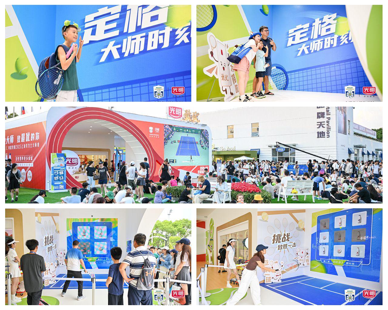 大师赛现场,以网球拍为灵感打造的光明致优展台,俨然成为全场焦点,创意展台设计与新颖趣味互动吸引众多观赛者驻足。
