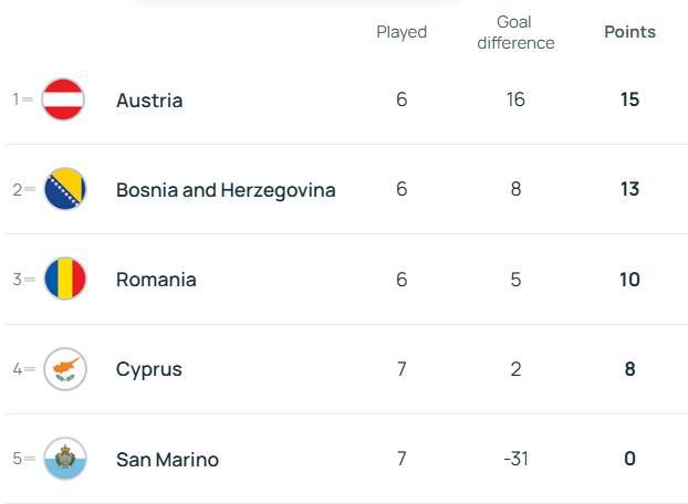10月的国际比赛周,欧洲区世界杯预选赛正进入白热化阶段。在今日凌晨结束的一场焦点战中,罗马尼亚队凭借终场前的绝杀进球,以1-0力克奥地利队。这场胜利让罗马尼亚的积分攀升至10分,仅落后H组第二名波黑队3分,小组出线形势陡然生变。