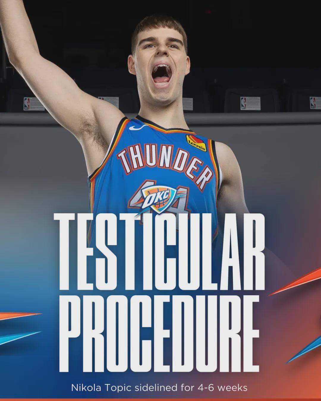 雷霆官方宣布,托皮奇将接受睾丸手术,目前手术已成功完成,但需要4-6周后重新评估。球队并未公布具体受伤原因,这位年轻后卫的伤病历程再添波折。此前他曾在队友索伯伤停时给予鼓励,如今自己却也踏上康复之路。