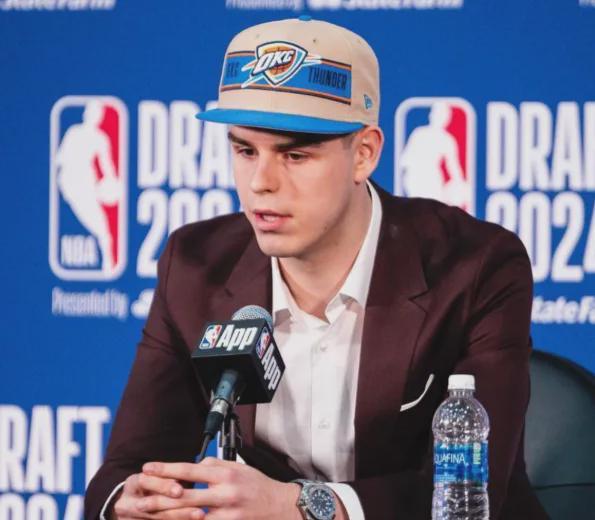 作为塞尔维亚篮球名宿之子,20岁的托皮奇拥有198公分的标准高后卫身材,选秀模板是NBA知名高后卫德拉季奇和萨托兰斯基。这位天赋异禀的新星在2024年1月遭遇左膝十字韧带撕裂,但雷霆仍用首轮第12顺位将其选中,并耐心养伤一年。