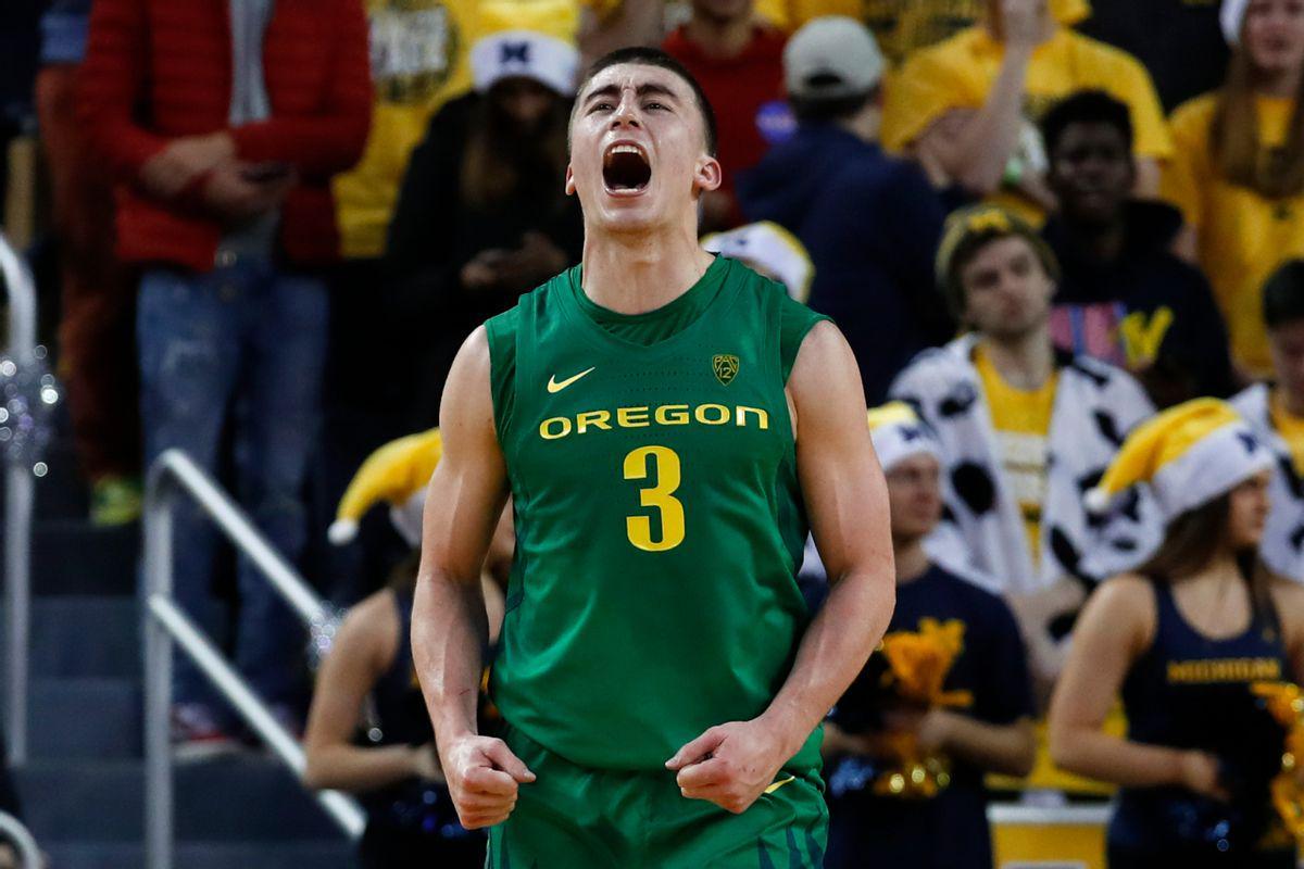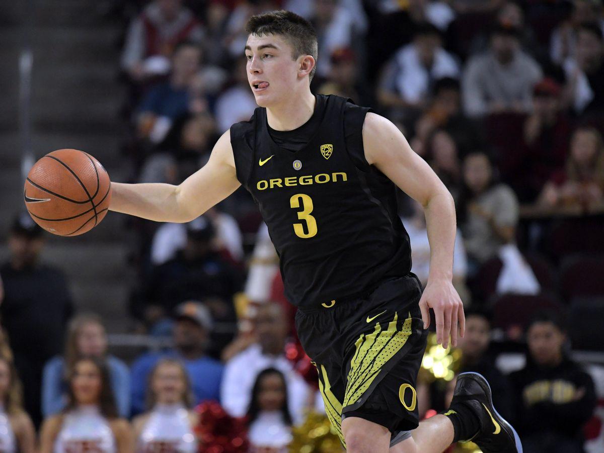 大二赛季,普里查德开始全面爆发。被提上首发后,他的数据暴增至14.5分、4.8次助攻,三分球命中率高达41.3%,赛季结束后入选了Pac-12最佳阵容。尽管大三赛季数据略有下滑,但他已成为球队绝对领袖,连续第三年帮助俄勒冈大学进入NCAA疯狂三月。